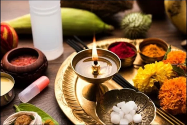 Puja Essentials like Kumkum, Turmeric Powder, Chandana, Camphor, Vibhuti, Doop etc.
